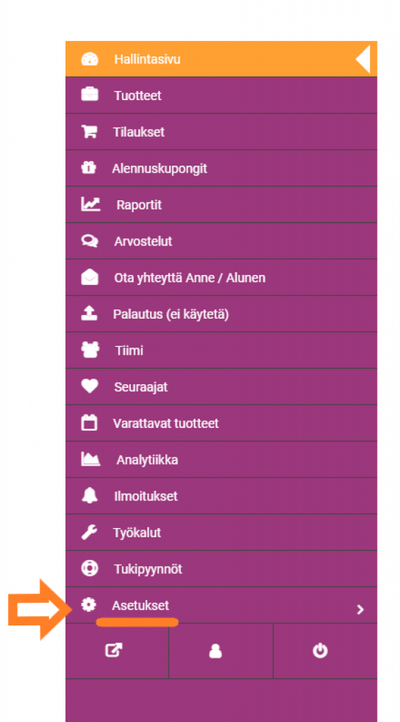 3. Valitse “Asetukset” kaupan hallintasivulta.